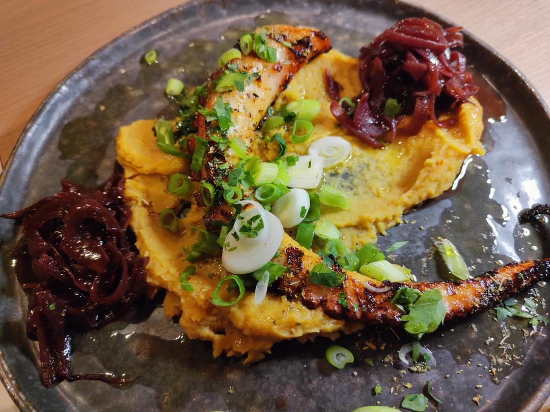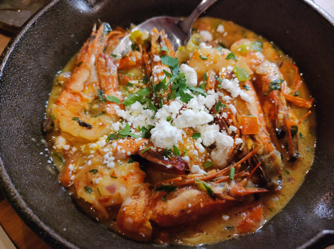 菜单非常有限,只有几道以鱼类为主的开胃菜、两道以鱼类为主的套餐和一些以肉类为主的菜品。我们点了一系列开胃菜,但都没什么惊艳之处。蘸酱的酱汁很普通,炸鱿鱼很嫩,但裹了太多面糊,章鱼触手还不错,煎虾则被酱汁淹没了。