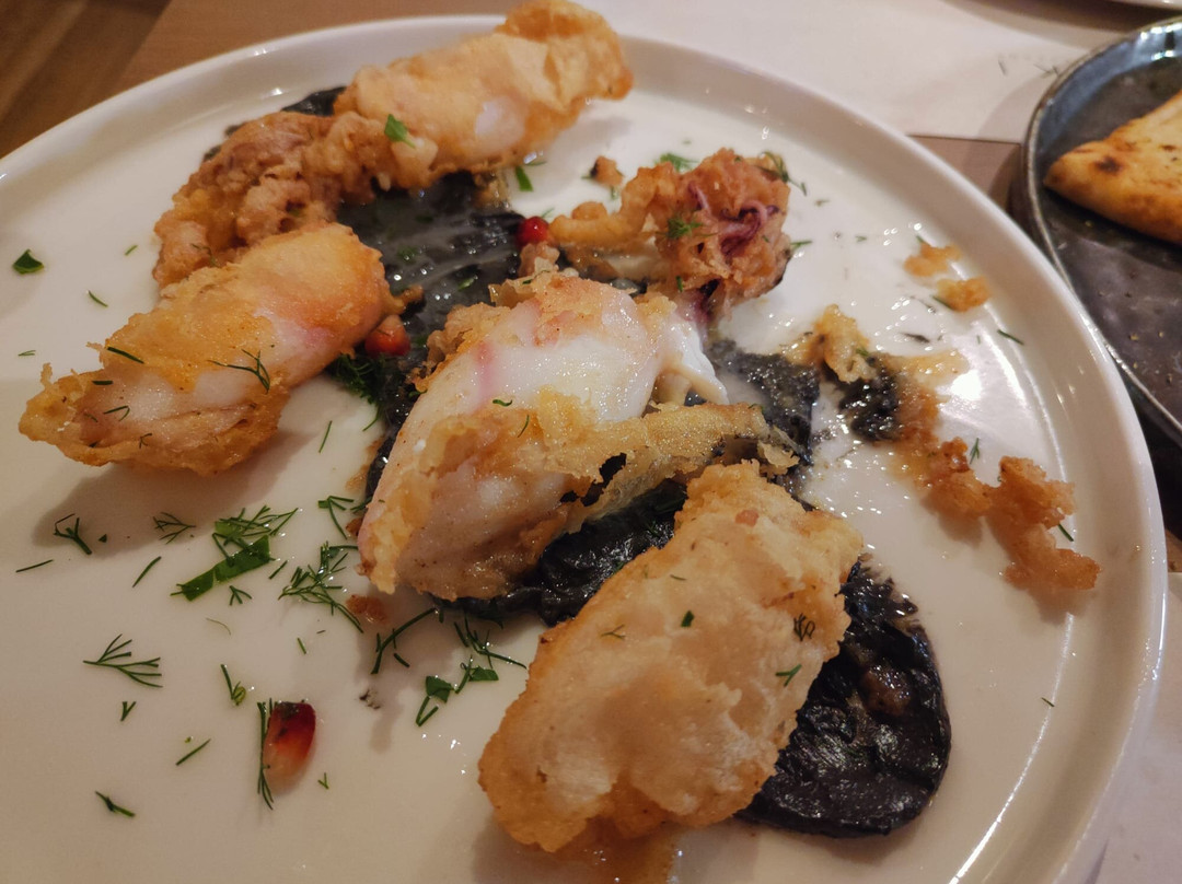 Il menù è molto ristretto, diversi antipasti in prevalenza di pesce, due proposte sempre di pesce e qualcuna in più di carne. Abbiamo scelto di provare una serie di antipasti. Nulla di eclatante. Anonime le salsine per i dip, i calamari fritti teneri ma eccessivamente pastellati, buono il tentacolo di piovra, troppo annegati nel sugo i gamberi in padella.